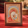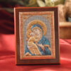 Italian Silver Greek Orthodox Our Lady of Vladimir Icon on a wood stand